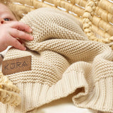 Our organic knitted baby blankets are a newborn essential and make the most beautiful new baby gift. Knitted from incredibly soft 100% GOTS organic cotton, our blankets are perfect for baby's delicate skin. They are ideal for wrapping or swaddling helping to keep baby comfortable and content in moses baskets, cribs, pushchairs, car seats or simply for snuggles with your little one.