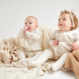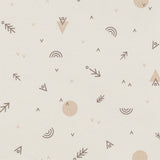 Brushed interlock light cream jersey printed all over with a natural element inspired pattern. The print colours perfectly compliment the Kura blanket and earth collection. Perfect for all bambinos and perfect for the modern mama.