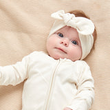 Our top knot headbands are crafted from incredibly soft 100% GOTS certified organic cotton jersey. They make the perfect accessory to complete your baby girls outfit. Pair with a matching Zip up Sleepsuit for the perfect coming home from hospital outfit.